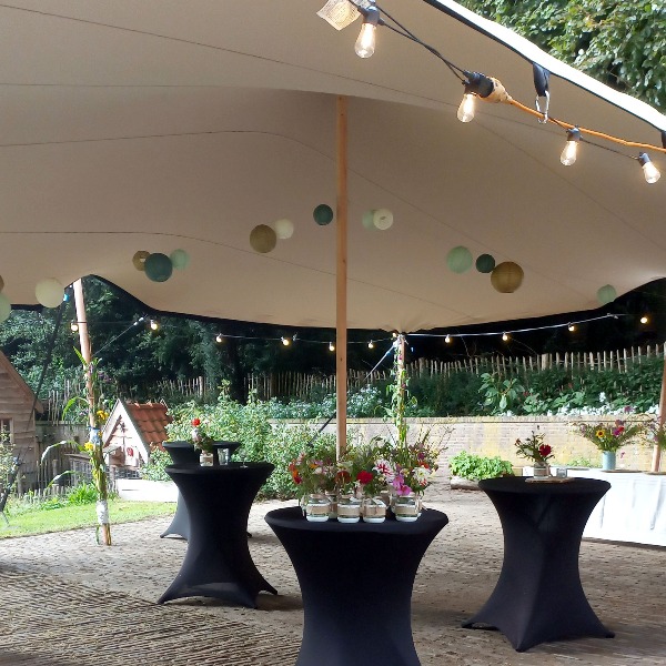 Het doek voldoet aan de brandvertragende classificatie M2/B1 en aan de NEN-EN 13782-norm voor tijdelijke, demonteerbare constructies. De windbestendigheid is getest tot 8 Beaufort.